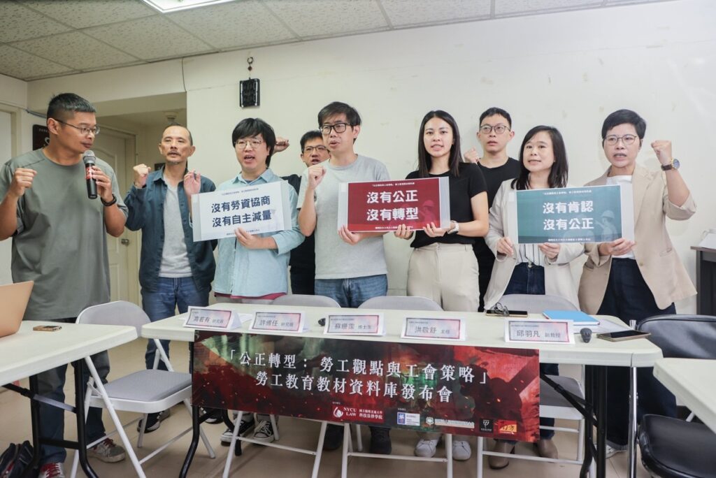 此資料庫蒐集國內外資訊、政策分析、實務案例等,共同撰寫國內第一份為工會而寫的公正轉型勞教手冊,並製作為《公正轉型與工會角色》教材資料庫網站:https://portaly.cc/wjtcourse 。 此為專為台灣工會所打造的勞動教材。希望能補足工會當前對於公正轉型的受到的資訊落差,並作為基層工會主動介入綠色轉型政策的行動工具,提升工會協商能力,讓勞工能獲得更大保障!本資料庫作者群於今日(2025/4/29)五一勞動節前夕,召開記者會公開發表資料庫成果,並表達工運界對於公正轉型議程的共同關切,呼籲政府及各界認識:「沒有公正、沒有轉型」/「沒有勞資協商、沒有自主減量」/「沒有肯認、沒有公正」,並提出兩大訴求:第一、自主減量計畫應以「團體協商」作為必要條件。不能讓企業「自行承諾、員工承擔」,減碳目標與行動方案應納入工會的協商與監督機制。 第二、針對無工會的勞動者,也應強化社會對話與社會安全網的保障。不能因尚無工會組織,就放任企業單方決定轉型成本的分配。